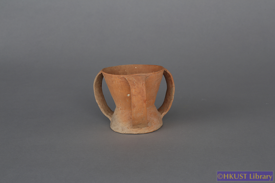 齊家文化 (約公元前2050-1700年) 紅陶三耳杯 Qijia Culture (c. 2050-1700BC) A Red Pottery Cup with Three Handles 尺寸 Dimension : 8.5cm(H)