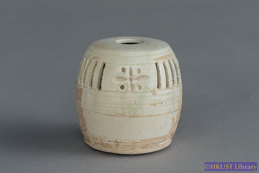 北齊 (公元550-577年) 青黄釉印花薰爐 Northern Qi (AD550-577) A Yellow Green Glazed Pottery Incense Burner 尺寸 Dimension : 7.8cm(H)