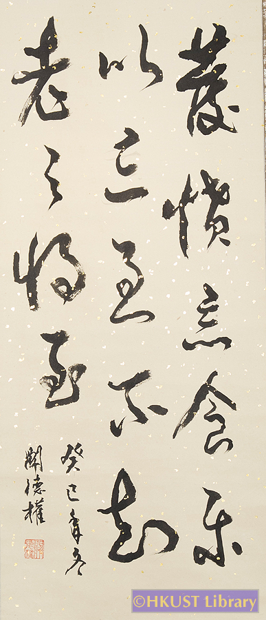 關德權 KWAN Tak Kuen 節錄自論語述而篇 草書 Cursive Script 125 x 45 cm 釋文: 發憤忘食 樂以忘憂 不知老之將至