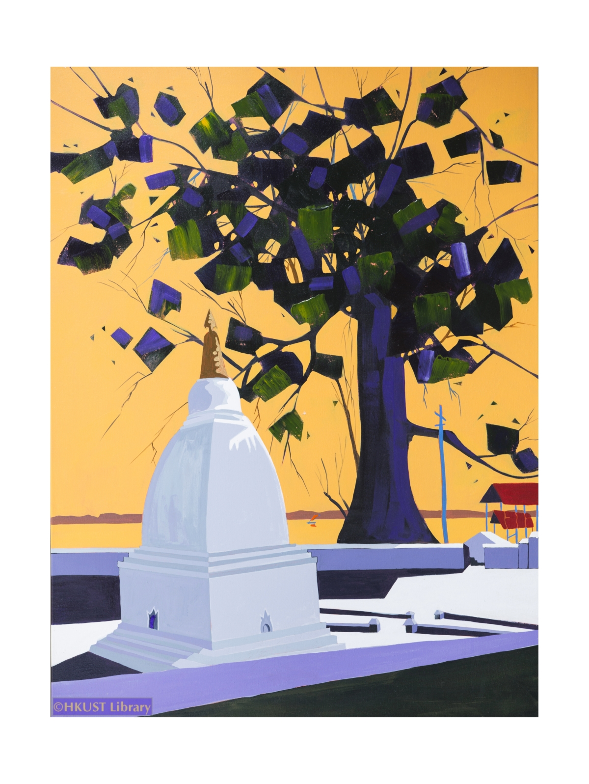 Eain Aye Kyaw was born in Yangon in 1981. Inspired by a painter at the end of his street, he attended the State School of Fine Arts in Yangon from 2001 to 2004. After graduation, he worked as a commercial artist for the tourist trade, and as a housing broker. He became a full-time artist in 2010. This painting is of a model of Mingun Pagoda, which famously was never built. There could be an oblique political message here – for in Myanmar many plans fail to come to fruition.