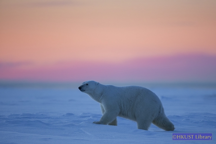 I took this image a moment after sunset, as the sky turned purple and the polar bear walked lost in thought, oblivious to time or destination. The blanket beneath him and the low light were perfect conditions for a little Arctic daydreaming.